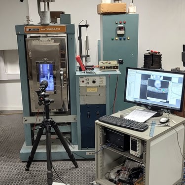 The Polymer Mechanical Properties Laboratory is equipped with an INSTRON 4467 universal testing machine with grips for uniaxial compression and tension, bending, shear tests, and more; a thermostatic chamber; load cells (10N, 0.5kN, and 30kN); a flexural creep machine; an instrumented impact testing machine (Ceast Fractovis, falling weight, Izod, Charpy, and disc tests); an instrumented durometer; Hysitron Triboindenter; video extensometry; strain gauges for large and small deformations; digital image correlation (2D) from Correlated Solutions; LVDT displacement sensors; and a high-speed Phantom VEO E310 camera. The laboratory also supports pipe testing according to ISO 13477, 13479, and 13480 standards, with a thermostatic bath for sustained pressure tests and an S4 impact testing machine.